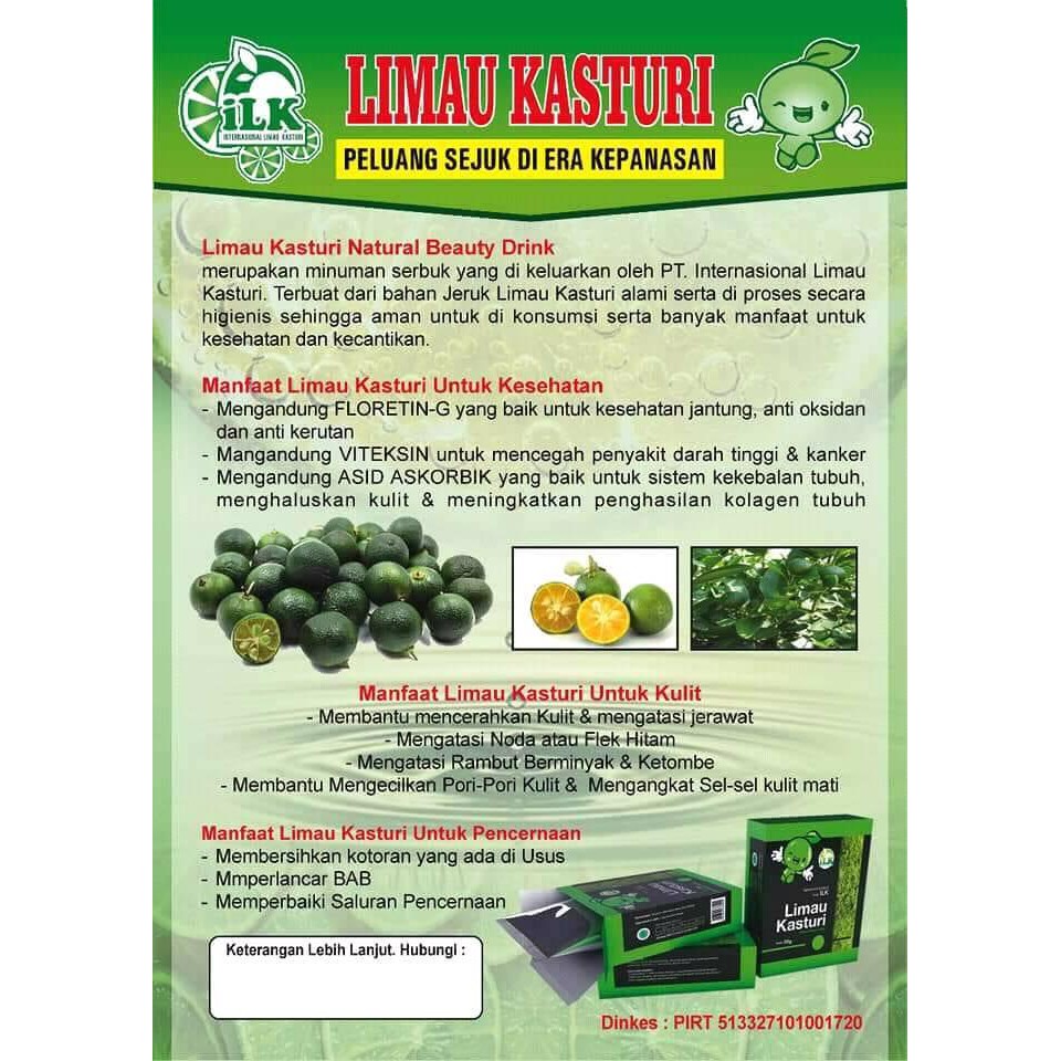 Perahan jus limau kasturi atau nama saintifiknya citrus microcarpa memang diakui mampu menambah keenakan rasa sesetengah minuman dan masakan namun, keistimewaannya tidaklah terhenti setakat itu. Anda boleh panggil sy cik limau k. Bagi yg mengalami kesusahan punya keturunan,disarankan minum nulika atau nulika mix nulika,,sdh banyak sekali yg berhasil positif hamil dgn rutin minum limau kasturi. Banyak faktor yang menjadi penyebab penyakit ini, seperti gaya hidup yang tidak sehat, obesitas juga terlalu banyak dalam mengkonsumsi makanan yang memiliki kandungan glukosa. Limau kasturi ilk bermanfaat untuk diet dan kesehatan, dapatkan harga promo disini.